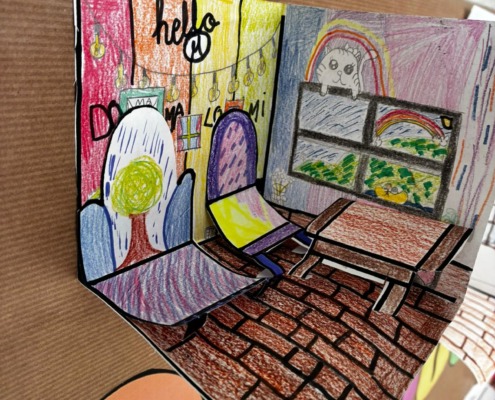 In Art class, our 3rd and 4th grade students created their own 3D bedrooms using only paper, markers, and colored pencils ✏️🖍️