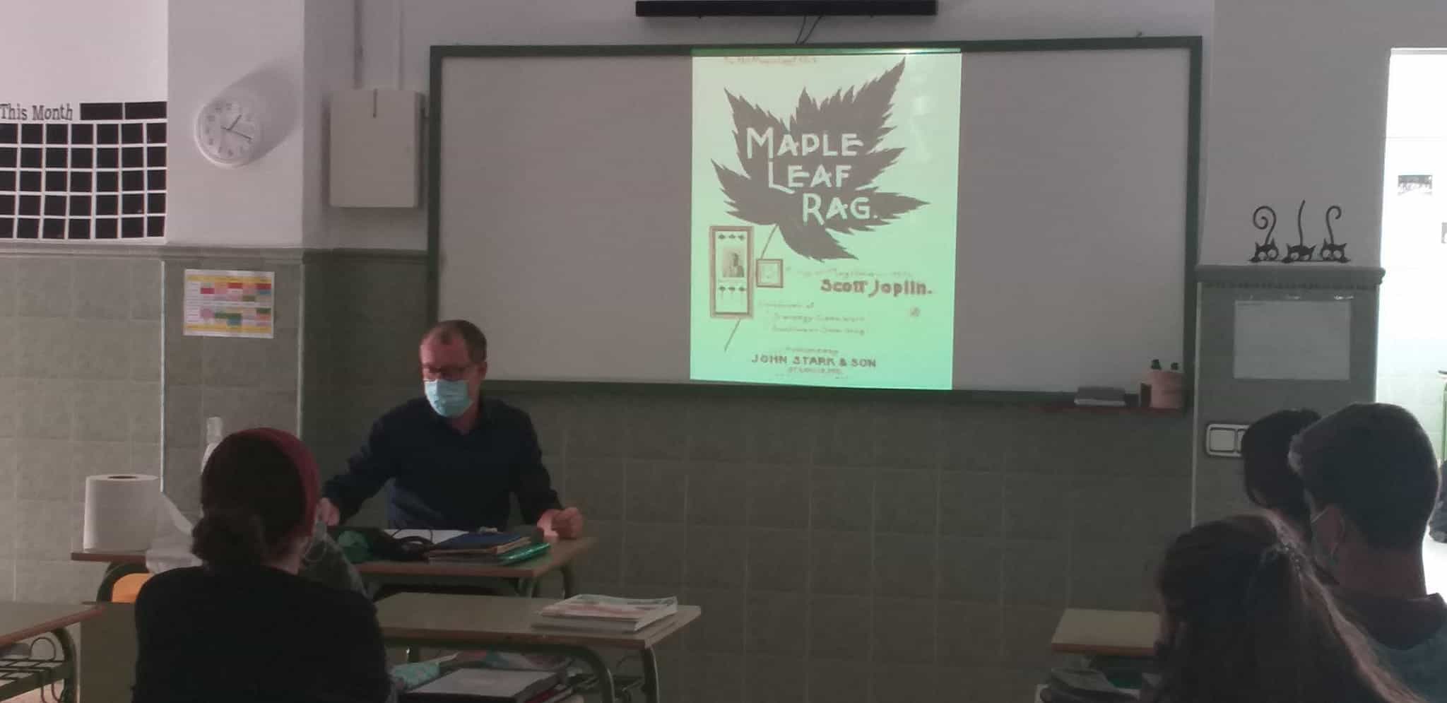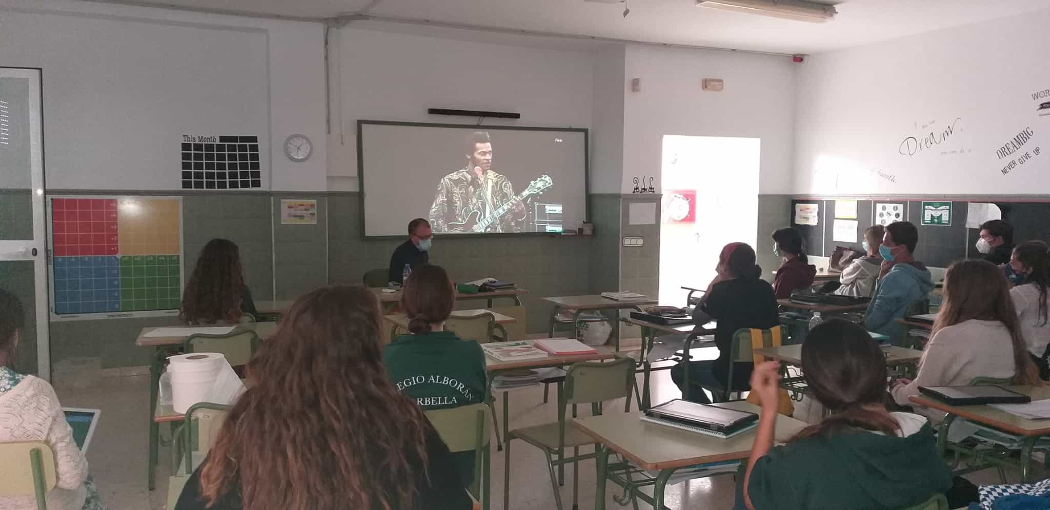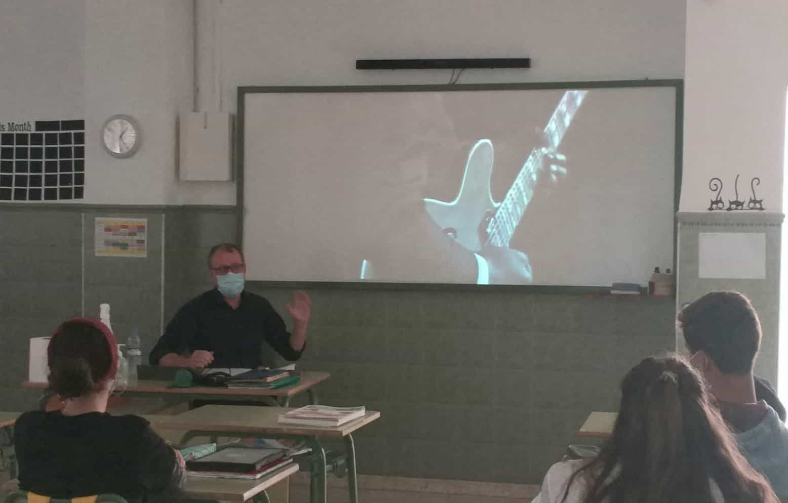 El jueves 15 de octubre el alumnado de Imagen y Sonido y Tic de 2º de Bachillerato junto al de Artes en Cultura audiovisual tuvo el placer de asistir a una conferencia muy interesante sobre música, impartida por el director de nuestro centro, José Luis González titulada “De la esclavitud a las limusinas”.