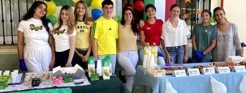 Por su parte, el Departamento de Inglés de Secundaria, junto con el personal de cocina, el alumnado de 2º y 3º de ESO y sus familias, ha celebrado el café “La Vuelta al Mundo”. Una experiencia en la que todos han podido degustar platos de Turquía, Estados Unidos, España, Brasil, Chile e Italia, además de disfrutar de karaoke, música y pintacaras. ¡Un evento fantástico cuyos fondos han sido destinados a una organización benéfica!